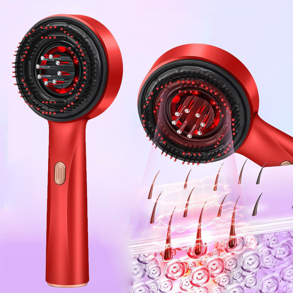 Red light and vibration stimulate circulation, energize follicles, and support healthier growth conditions, helping hair appear fuller while improving scalp comfort and balance overall.